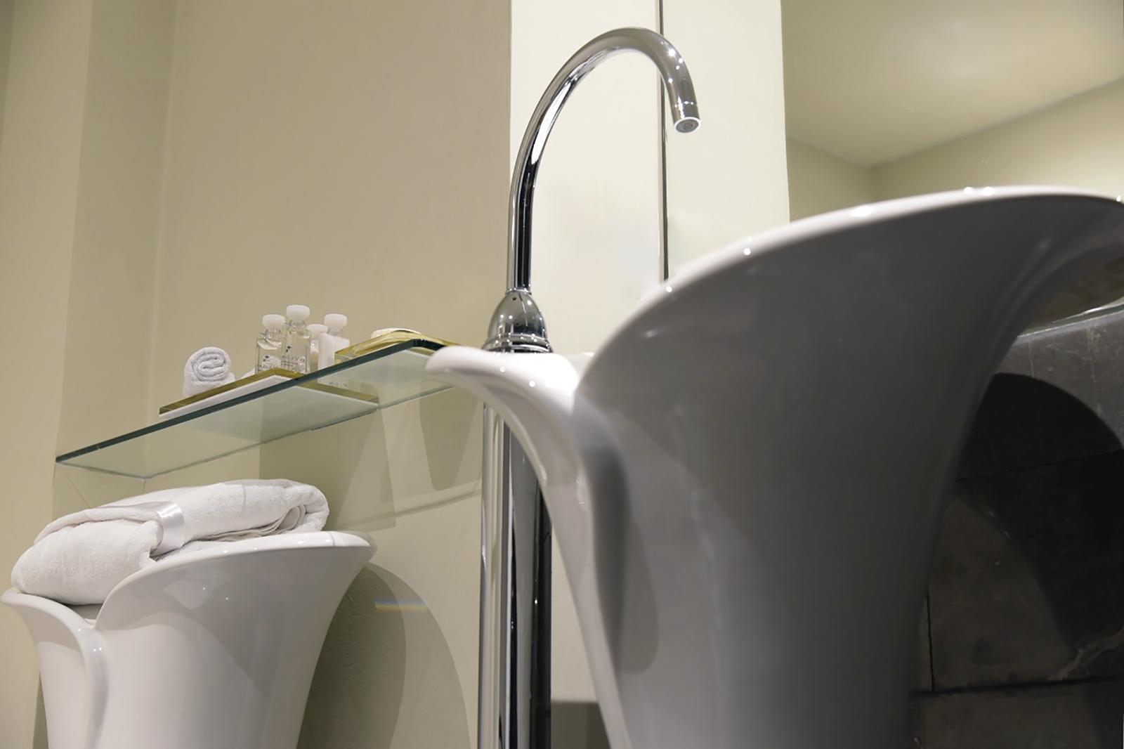 Cuenta con sala de estar y pequeño espacio de trabajo, cama extragrande fabricada con materiales hipoalergénicos y antibacteriales de alta calidad, sábanas de algodón de 300 hilos, cabecera tapizada en terciopelo y/o loneta al igual que las cortinas. Suelo de madera de tzalam y baño recubierto de mármol de Santo Tomás, lavabo de porcelana en forma de alcatraz en un espacio unificado con ducha de lluvia y de mano, grifería de acero inoxidable, amenidades de lujo, bata de baño y pantuflas.