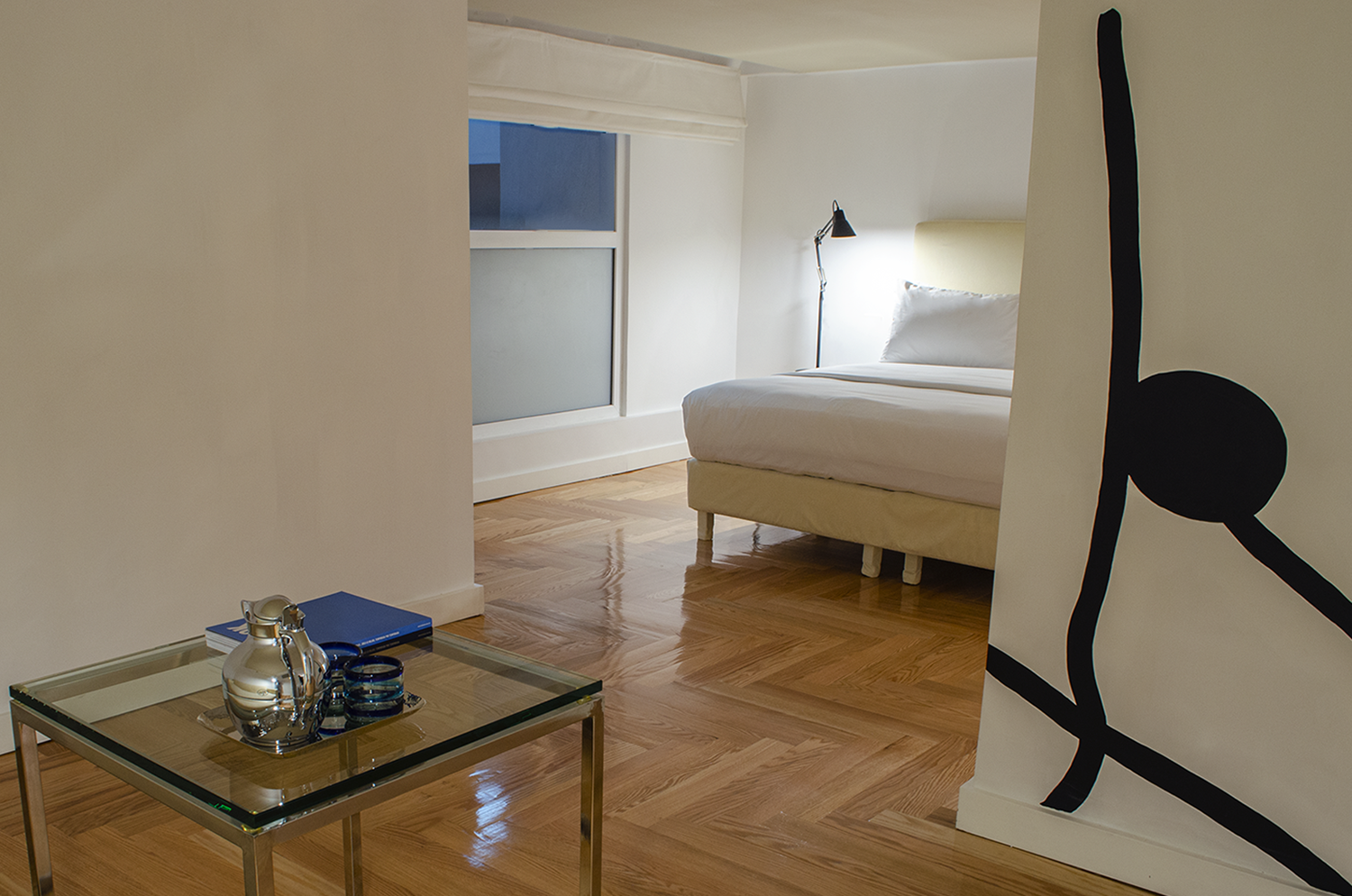 Junior suite de 32m2 con vista a interiores de la Casa Palacio del Vitral Azul.