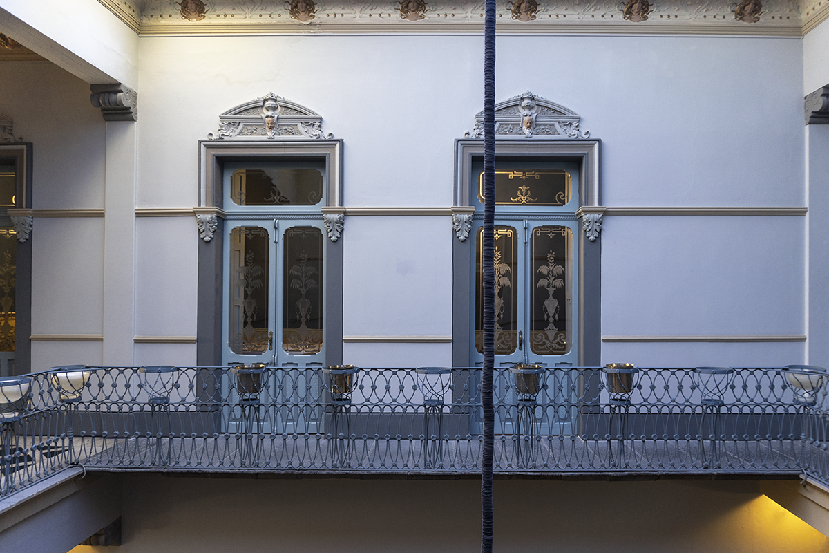 El Salón Azul tiene una chimenea de finales del siglo XIX, bellas puertas y un color azul intenso crea una atmósfera íntima y refinada. Puede ser para celebraciones pequeñas desde 10 a 24 personas, para coctel 30 y en teatro sirve para pequeñas charlas de libro, reuniones de empresas o informes de prensa.